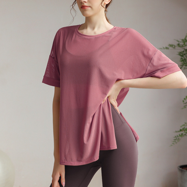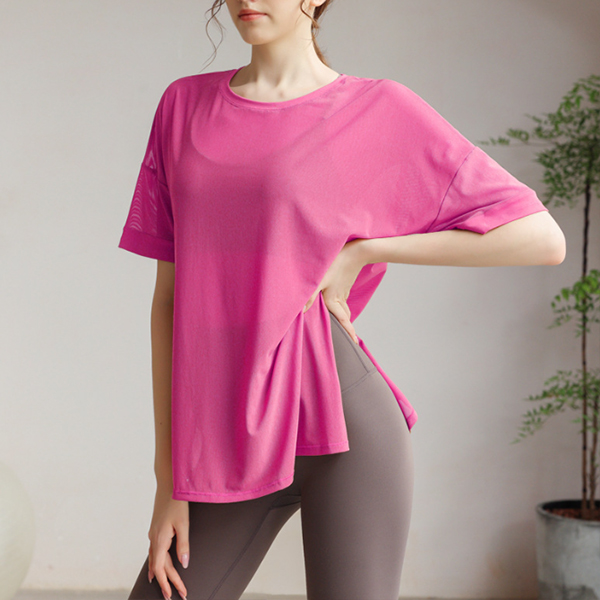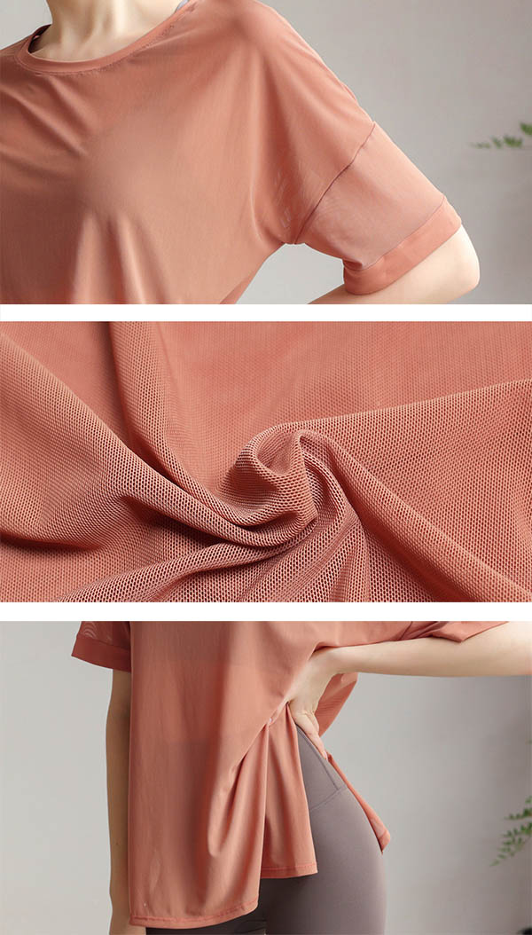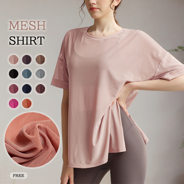 ■コメント ・スポーツ&カジュアルコーデに使える半袖メッシュシャツ。 ・柔らかく丸みのあるクルーネック。 ・チュニック丈感で体系カバーできます。 ・通気性が高く、運動中の汗や水分を迅速に吸収、放出するので、汗をかいてもさらっと快適な着心地です。 ・フィットネス・エクササイズ・ヨガ・ランニングなど様々なアクティブシーンで大活躍です。 ・カラーバリ豊富で色違いでほしいアイテムです。 ■サイズ(単位:約cm) FREE(普通) 着丈71CM バスト116CM ※平置き採寸の為、1-3cmの誤差がある場合があります。予めご了承下さいませ。 ■カラー 画像に記載 ■裏地 なし ■生地の厚さ 普通 ■透け感 あり ■伸縮性 なし ■素材 ポリエステル100%